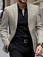 Homme Remise de diplôme Blazer Affaires Cocktail Fête de mariage Mode Occasionnel Printemps Automne Polyester Plaid Avec Poches Boutons Confortable Simple Boutonnage veste Noir Marron Café Gris