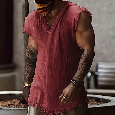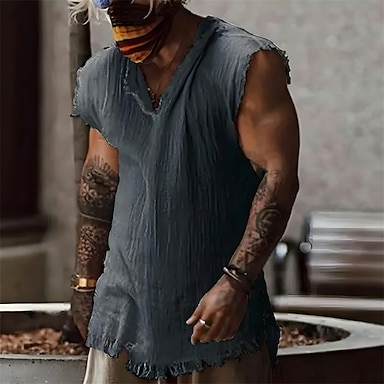 Homme Débardeur Sweats à capuche zippés Sweat à capuche sans manches Sans manches À capuche Printemps & Été Fleuri Grille / Carreaux Mode Occasionnel Respirant Cordon de serrage Vacances Occasionnel