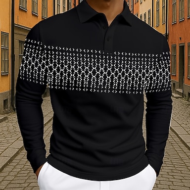 Homme Polo Affaires Occasionnel Col Rabattu Manche Courte Géométrique Boutons Été Noir Blanche Bleu Gris clair Polo