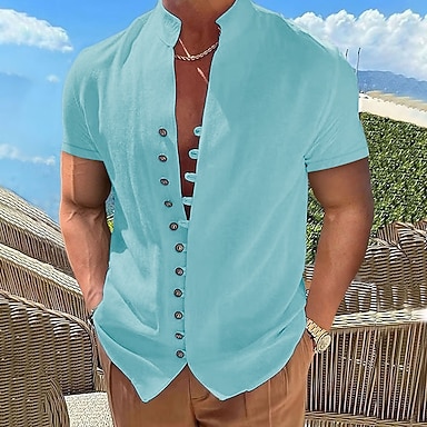 Homme Chemise Chemisette Chemise d'été Tenues de plage Chemise boutonnée Plein Vacances Casual Noir Blanche Rose Claire Bleu manche longue Col Mao Printemps été Vêtement Tenue