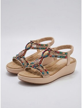 sandales compensées à perles bohèmes pour femmes avec bride élastique – chaussures élégantes à bout ouvert pour l'été, la plage et les sorties décontractées