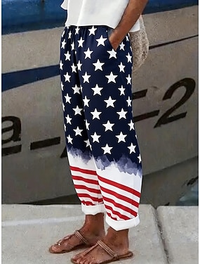 Femmes Chinos Leggings Vacances Mode Streetwear Capris Taille hautePantsJour de l'Indépendance américaine Fleuri Graphique Drapeau Américain Imprimé Confort Doux Confortable Élastique Quotidien
