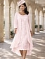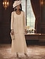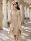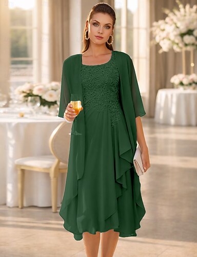 Deux Pièces Fourreau Colonne Ensembles de Robes Mi-long Robe d'invité de mariage Robe de Mère de Mariée Manche 3/4 Bijoux Élégant robe demoiselle d honneur Église Chiffon Satin Dentelle Robes avec