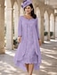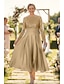 Ligne A Longueur thé Mi-long Robe de Soirée Robe de Cocktail Robe d'invité de mariage Robe de Mère de Mariée Manche 3/4 Col de chemise Élégant Simple Minimaliste Formel robe demoiselle d honneur