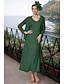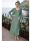 Robe de fête longueur thé A-Line Robe cocktail Robe invitée de mariage Robe mère de la mariée Robe à manches 3/4 V col Élégante Formelle Invitée de mariage avec Drapé sur le côté