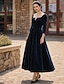 Ligne A Longueur thé Robe de Soirée Robe de Cocktail Robe d'invité de mariage Robe de Mère de Mariée Manche 3/4 Col en V Élégant ancien Formel Satin avec Dentelle Couleur Unie