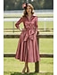 Ligne A Longueur au sol Robe Chemise Robe d'invité de mariage Robe de Cérémonie Robe de Mère de Mariée manche longue Col de chemise Élégant ancien Formel Tissu Extensible avec Ceinture / Ruban Bloc