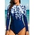 Femmes Maillot Anti UV Maillot de bain à imprimé floral Maillot de bain imprimé Zip Up Boyleg Ultra Léger (UL) Protection UV Élastique manche longue Maillot de Bain Surf Plongée en apnée Printemps
