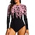 Femmes Moyen Maillot Anti UV Maillot de bain Maillots de Bain Sportifs Floral Zip Up Coussin amovible fermeture éclair sur le devant Protection Solaire UV UPF50+ Ultra Léger (UL) manche longue