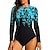 Femmes Standard Maillot Anti UV Rashguard intégral Maillot de bain Dégradé Océan avec soutien-gorge intégré fermeture éclair sur le devant Protection Solaire UV Couvrant UPF50+ manche longue Coque