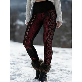 Femmes Viking Chinos Leggings Leggings confortables Vacances Occasionnel Longueur complète Taille haute MOON Impression Chaleur Thermique Confortable Élastique Occasionnel Quotidien Vacances Noir