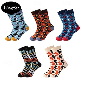 Homme 5 Paires Chaussettes Chaussettes de Course Chaussettes Décontractées Bleu Noir Couleur Géométrique Extérieur Vacances Tenue quotidienne Moyen Printemps Automne Mode Streetwear