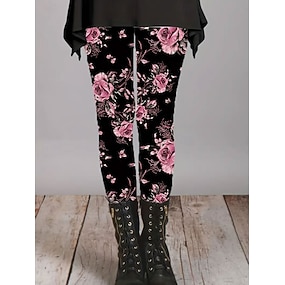 Femmes Leggings Vacances ancien Mode Longueur complète Taille haute Fleuri Graphique Impression Chaleur Thermique Doux Respirant Élastique Quotidien Extérieur Vacances Bleu Rose Gris foncé Violet