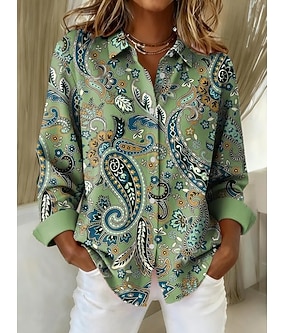 Femmes Chemise Chemisier Patchwork Boutons Imprimé Graphique Géométrique Paisley Bohème ancien Tropical manche longue Col de chemise Hauts Réguliers Quotidien Orange Vert Kaki Printemps Automne Hiver