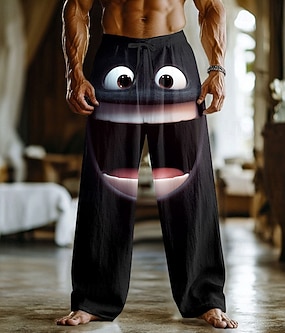 Homme Dessin Animé 3D Visage Souriant Pantalons Pantalon décontracté Pantalons Amples Taille Moyenne Drôle Maison Extérieur Vacances Taille élastique avec cordon de serrage Pantalon en lin avec poches