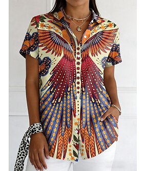 Femmes Chemise Boutons Imprimé Graphique Abstrait ancien Élégant Moderne Manche Courte Col de chemise Hauts courts Quotidien Bleu Violet Orange Vert Été Printemps