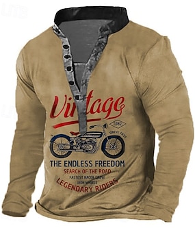 Homme Moto T-shirt Chemise Henley manche longue Impression 3D Rétro Vintage Occasionnel Vacances Quotidien Sortir Été Kaki Henley T-shirt Henley