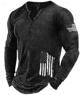 4 juillet 2026 250e jour commémoratif T-shirt à manches longues Henley graphique designer pour hommes drapeau national