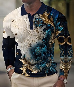Derby du Kentucky Homme Floral Chemises Polo Gaufre manche longue Polos Chemises à Col Occasionnel Extérieur Tenue de soirée Vêtements de rue Boutons Blanche Bleu Orange