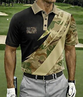 4 juillet 2026, 250e anniversaire Homme Drapeau Américain Golf Polos de Sport Manche Courte Polos Chemises à Col Occasionnel Athleisure Boutons Printemps & Été Bleu Blanche Vert Véronèse