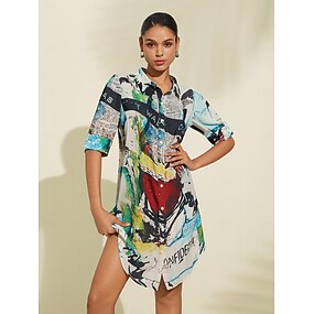 Femmes Mini Robe Robe Décontractée Bohème Vacances Tropical Mancheron Plage Vacances Fête Coupe régulière A Ombre Graphique Tropical Manche Courte Col ras du cou Bleu Blanche Rose Claire Violet Ét