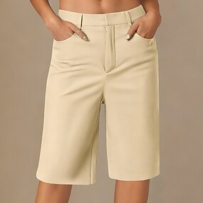 Femmes Shorts Shorts d'été Bermuda ancien Mode Décontracté Quotidien Longueur Genou Taille basse Couleur Unie Uni Avec Poches Jambe Droite Confort Léger Doux Non Elastique Vêtements de rue Bureau