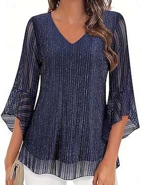 Femmes Chemise Chemisier Maille Uni Élégant Classique Moderne Manche 3/4 Col en V Hauts Réguliers Quotidien Fête Sortir bleu marine Été Printemps