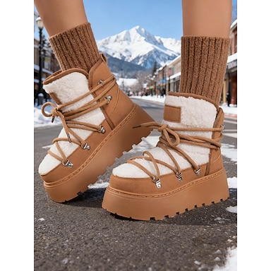 Bottes de neige à plateforme en fausse fourrure pour femmes - élégantes bottes marron à lacets avec doublure chaude, parfaites pour la randonnée hivernale, les activités de plein air et le quotidien