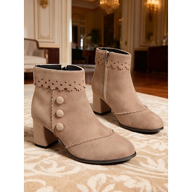 Bottines à bout pointu en daim beige pour femme avec nœud à l'arrière – élégantes bottines à talon carré pour les fêtes et au quotidien