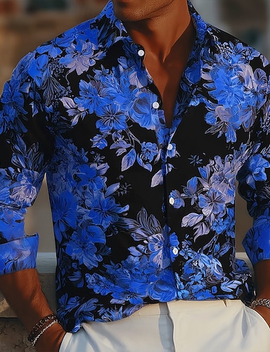 Homme Imprimé Floral Lueur néon Fleurs Chemise Chemise Boutonnée Chemise décontractée manche longue Hawaïen Vacances Quotidien Vêtements de rue Été Printemps Col Rabattu Impression 3D chemises à col
