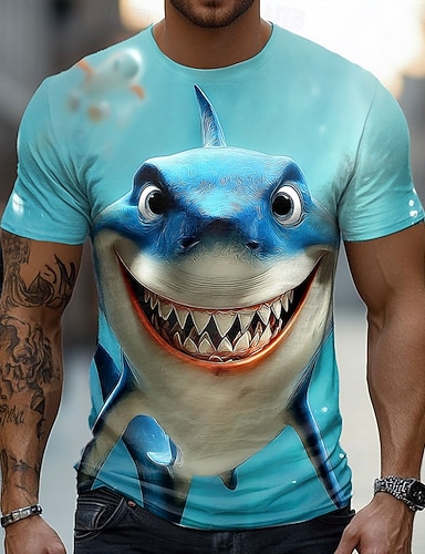 Homme Requin 3D Drôle T-shirt Manche Courte T-shirt Impression 3D Col ras du cou Chemise Exagéré Designer Soirée Fête Bleu 3# Bleu 2# Bleu 1# Été Printemps Vêtement Tenue S M L XL XXL XXXL
