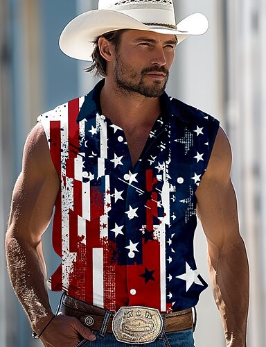 Jour de l'Indépendance Homme Drapeau Américain 4 juillet, 250e anniversaire des États-Unis Patriotique Chemise Chemise Western Chemise de cow-boy Sans manches Mode Décontractée Fête Été Printemps Col