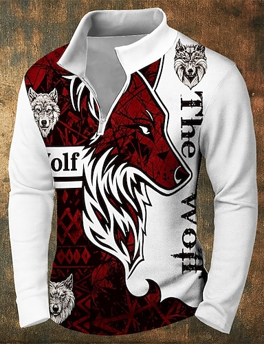 Homme Loup Sweatshirt Vintage Rétro Chasse manche longue Fermeture éclair Extérieur Sport en Plein Air Vêtements de rue Noir Blanche Automne Toutes saisons Designer S M L XL XXL XXXL