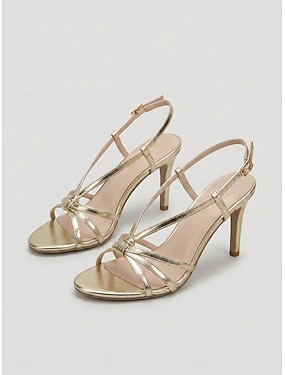 Sandales à talons aiguilles dorées à brides pour femmes – élégantes sandales à bout ouvert pour les invitées à un mariage en plein air &fêtes d'été