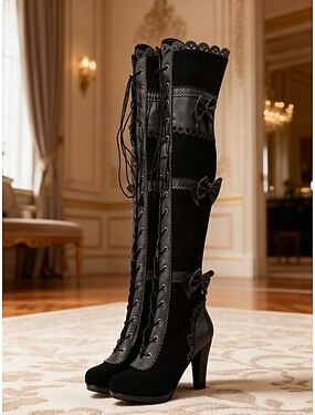 Bottes cuissardes bleues à lacets, style victorien, ornées de nœuds - Bottes vintage en daim à talons hauts des années 1920, parfaites pour le quotidien, le carnaval et les fêtes.