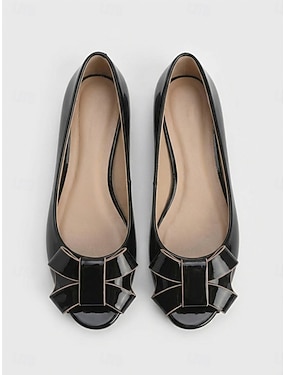 Ballerines noires vernies en similicuir pour femmes - élégantes chaussures à bout rond et nœud, parfaites pour un confort quotidien et des tenues décontractées. &vêtements de bureau professionnels