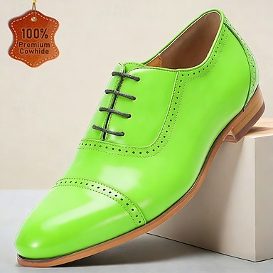 Chaussures Oxford pour homme en cuir véritable vert – style classique et habillé, parfaites pour les occasions formelles et professionnelles. Confortables et de qualité supérieure.