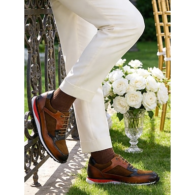 Baskets décontractées en cuir marron pour homme, au design sportif - des chaussures à la fois tendance et confortables pour les sorties décontractées et le quotidien.