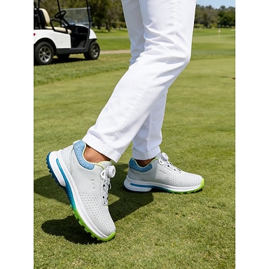Baskets de golf blanches et bleues pour hommes – confort amorti, similicuir résistant, parfaites pour le golf et le sport au quotidien