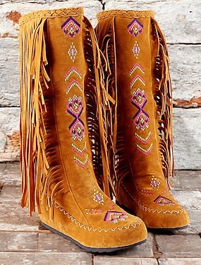bottes hautes en faux daim brodées à franges pour femmes, style bohème pour les festivals et les tenues décontractées