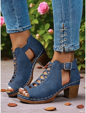 Bottines à talon bloc découpé et bout ouvert pour femmes avec fermeture éclair au dos – talons épais d'été élégants pour les rendez-vous, les garden-parties et les événements en plein air