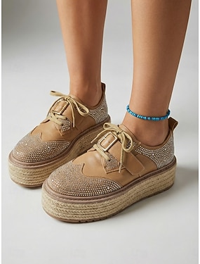 Baskets à plateforme strass pour femmes, chaussures décontractées à lacets et semelle épaisse espadrille, parfaites pour une soirée ou un look streetwear. &événements
