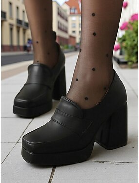 Mocassins à plateforme noirs pour femmes - Chaussures rétro à talons épais et à enfiler pour le bureau, le style urbain et les tenues d'inspiration vintage