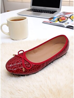 Ballerines en similicuir gaufré crocodile pour femme – Ballerines à nœud rouge pour le confort au bureau et lors des déplacements