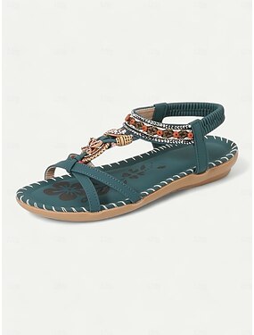 sandales plates de style bohème pour femmes avec ornements en perles et bride élastique, chaussures d'été confortables pour la plage et les sorties décontractées