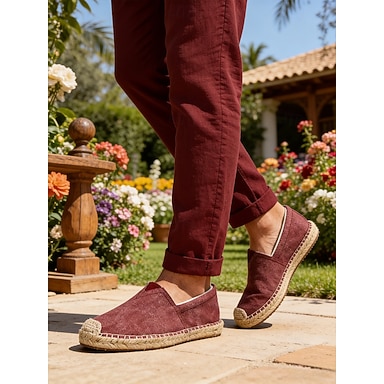 Espadrilles bordeaux pour homme, modèle à enfiler avec semelle en jute, décontractées et confortables, parfaites pour les séjours en plein air et les escapades relaxantes.