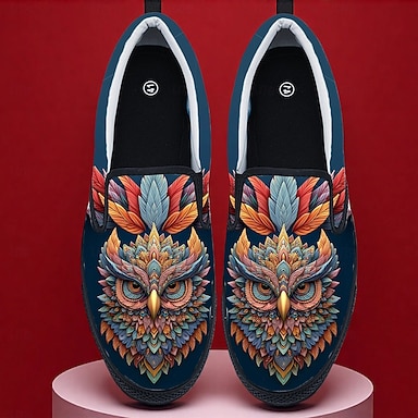 Chaussures à enfiler avec motif de hibou vif pour hommes de Mardi Gras – Design artistique et audacieux pour le carnaval les parades et les célébrations festives