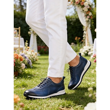 Baskets en cuir bleu marine pour hommes – un design élégant, parfait pour les mariages, les réceptions formelles et les événements semi-formels.