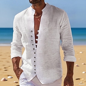 Homme Chemise Chemise en lin Chemise d'été Chemise Décontractée Chemise Boutonnée Uni Vacances Croisière Noir Blanche Rose Claire Bleu manche longue Band Collar Été Printemps & Automne Vêtement Tenue