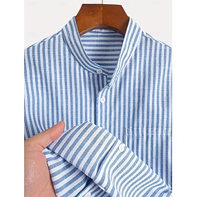 Homme Chemise Chemise en coton et lin Chemise en coton blanc Chemise à col chinois Chemise à col mao Chemise Décontractée Papillon Vacances Occasionnel Blanche bleu marine Gris Bleu clair Manche